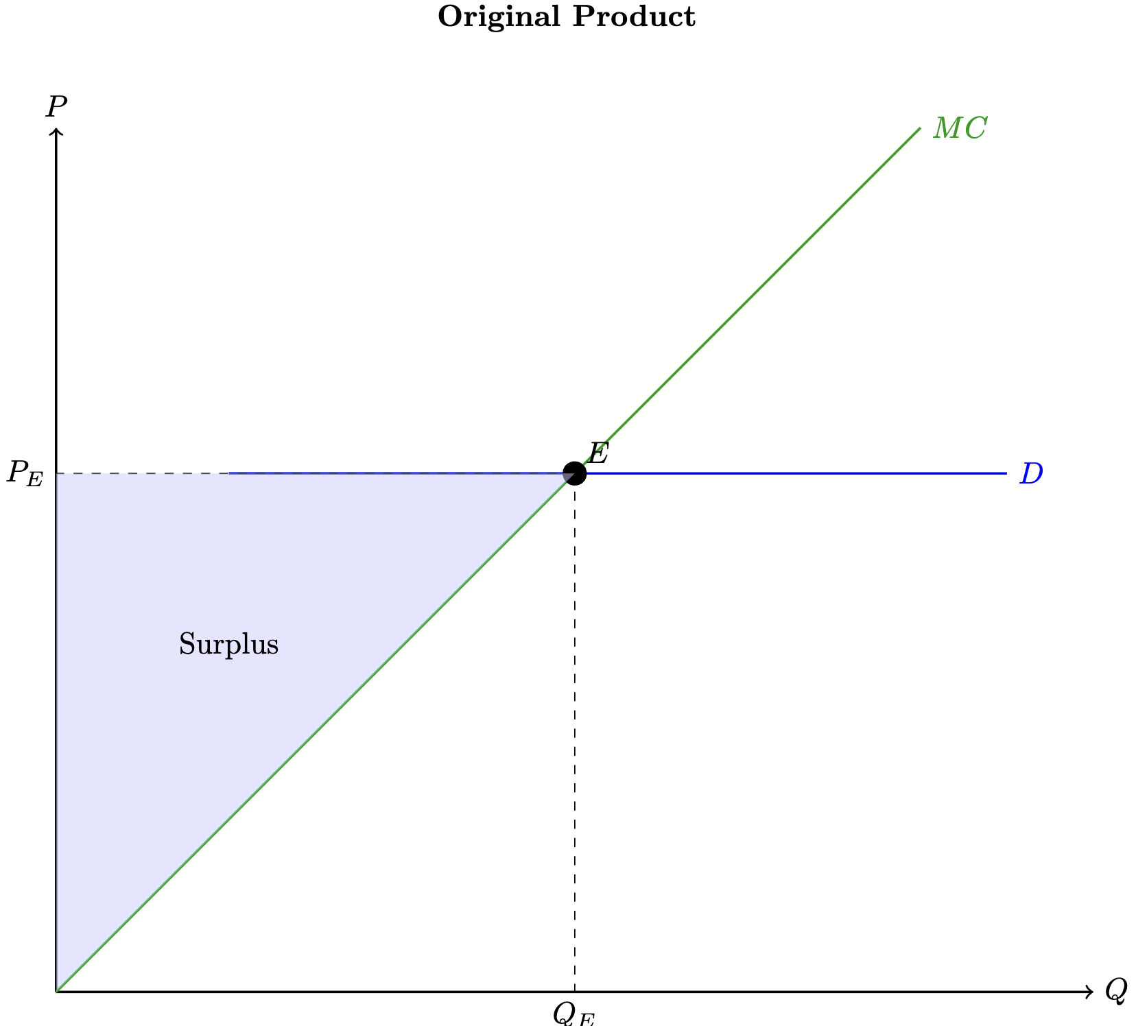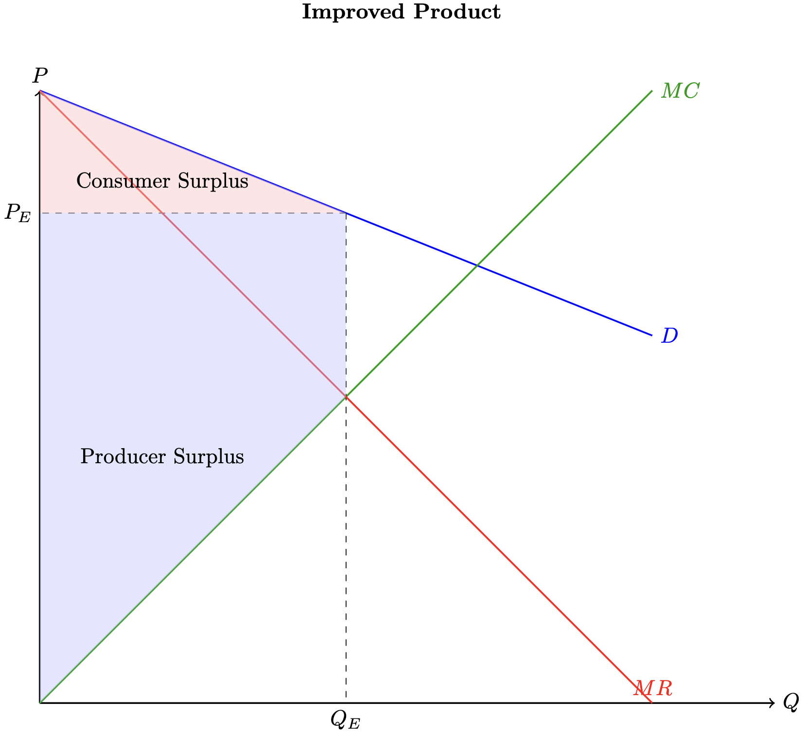 Maybe the improvement was an idea that other firms could quickly replicate. In that case, markets will be driven back to the original graph. However, we need to realize that, in that case, the graph won’t show consumers’ welfare gain, but it is there.
