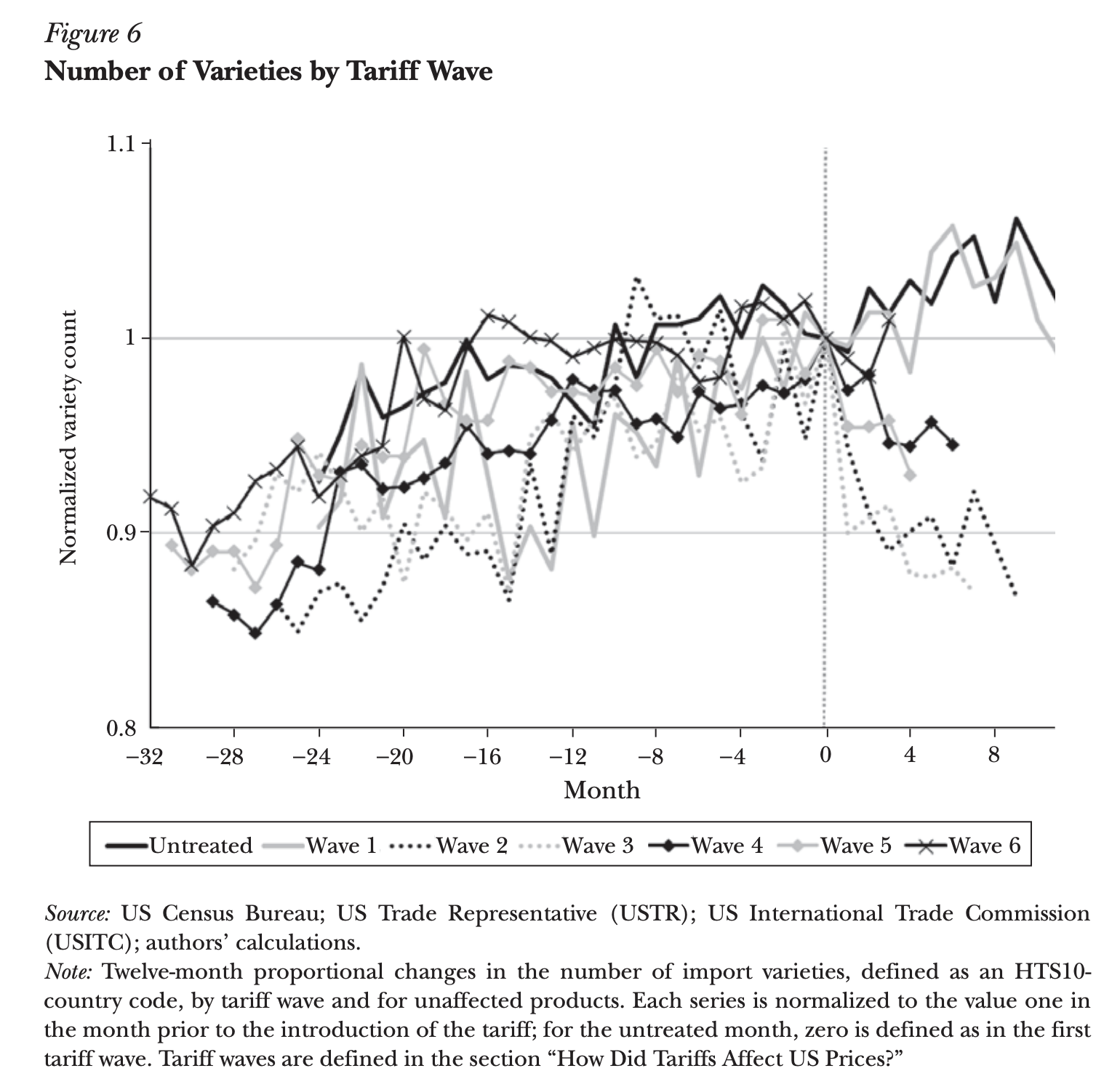 Consumers are also hurt in ways less obvious than higher prices. For example, tariffs also reduce their options when they shop. Go into any grocery store today at any point of the year, and you will see a dozen kinds of fresh fruit. How? Modern trade. Consumers benefit from this variety instead of being stuck with canned peaches all winter. Amiti, Redding, and Weinstein find variety accounts for half of the trade-induced GDP growth. Trump’s tariffs reduced the varieties of the affected goods. There's no reason not to expect the same from future tariffs.