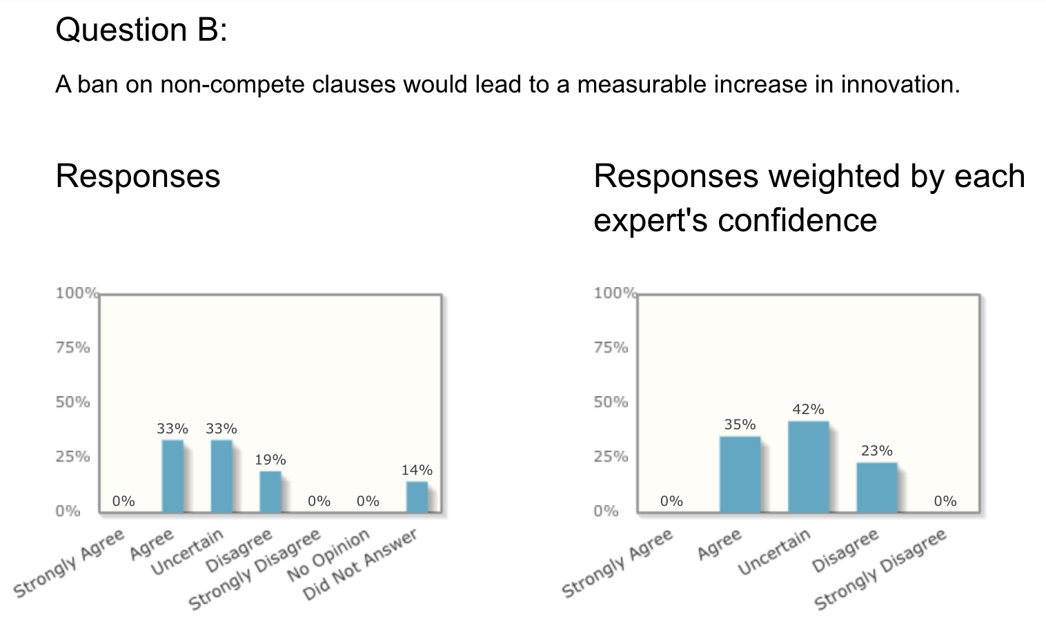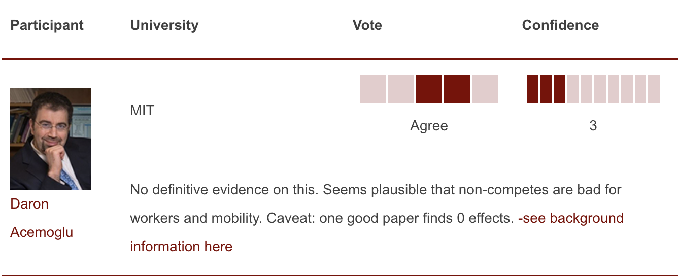 (Edit: Between when I wrote this newsletter and it was published, IGM released a new poll on noncompetes. The results show more uncertainty about the outcomes and about a ban. We should update that Twitter is not representative. For example, they asked about innovation this time.
